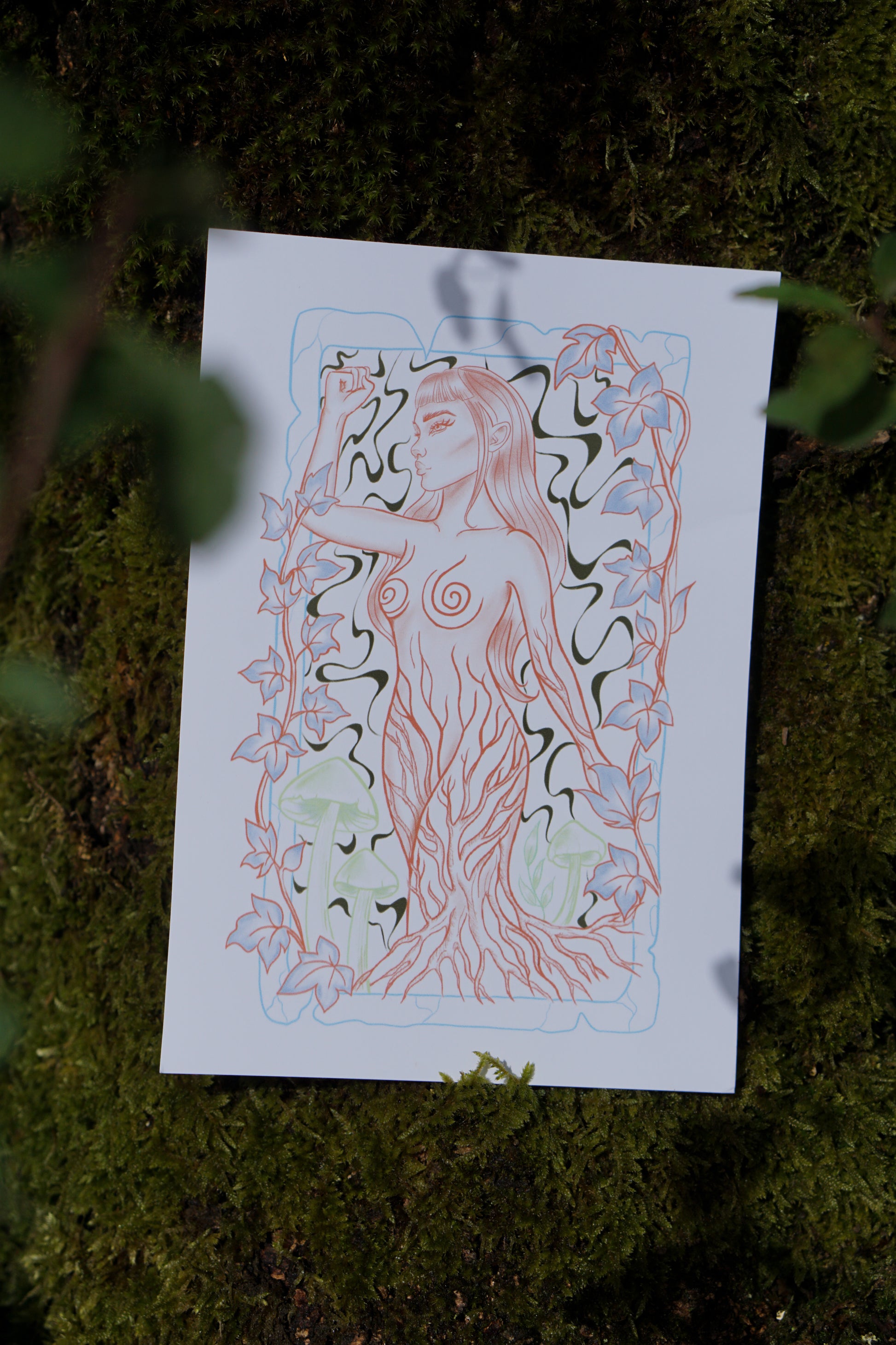 Poster in Museumsqualität mit „Nature Feminism“ Pastell Print auf strapazierfähigem, mattem Papier. Ein Statement in jedem Raum, diese Babies sind das i-Tüpfelchen, das deinem Zimmer oder Büro fehlt.